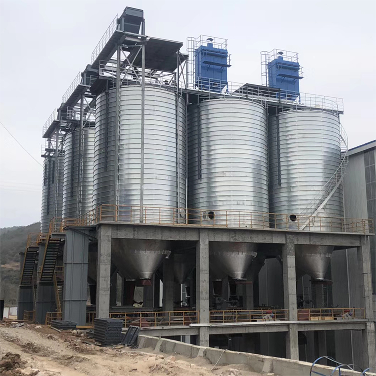 接收与清理设置在筒仓中央该形式筒仓一般采用对称排列,提升机井架固定,经过提升后的物料通过仓顶溜管进人筒仓。这种形式省去了仓顶输送设备和上通廊,从而节省了建造费用,缩短了建造工期。对于贮存时间要求较长的大型粮库,则应根据物料的流向、场地情况、工艺要求等合理地配置投料口、工作塔、烘干塔及自贡钢板仓的位置。国华钢板仓介绍了这几种常见的进料形式,实际中可将各种形式相互组合,相互渗透,根据实际情况合理搭配,灵活选用。